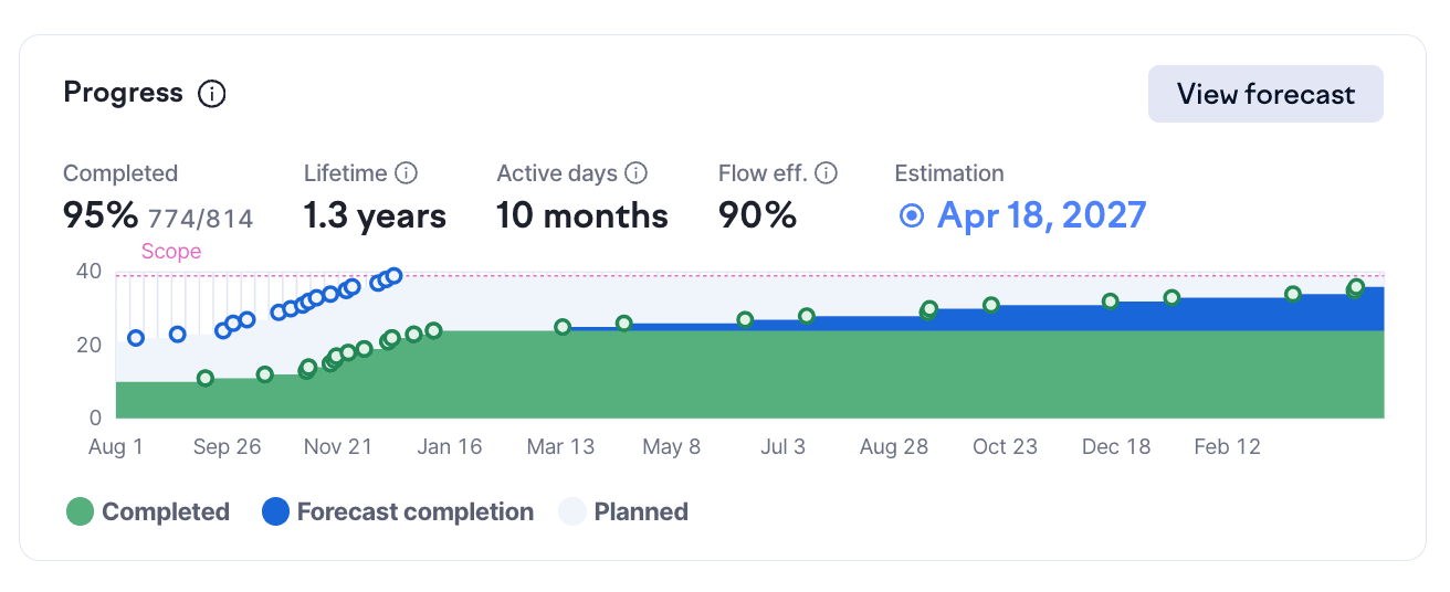 Planning accuracy tracks what teams planned to ship versus what actually shipped. You can track this a bunch of different ways, depending on whether you use deadlines and how you estimate work (as long as it’s not using story points, you’re good).
