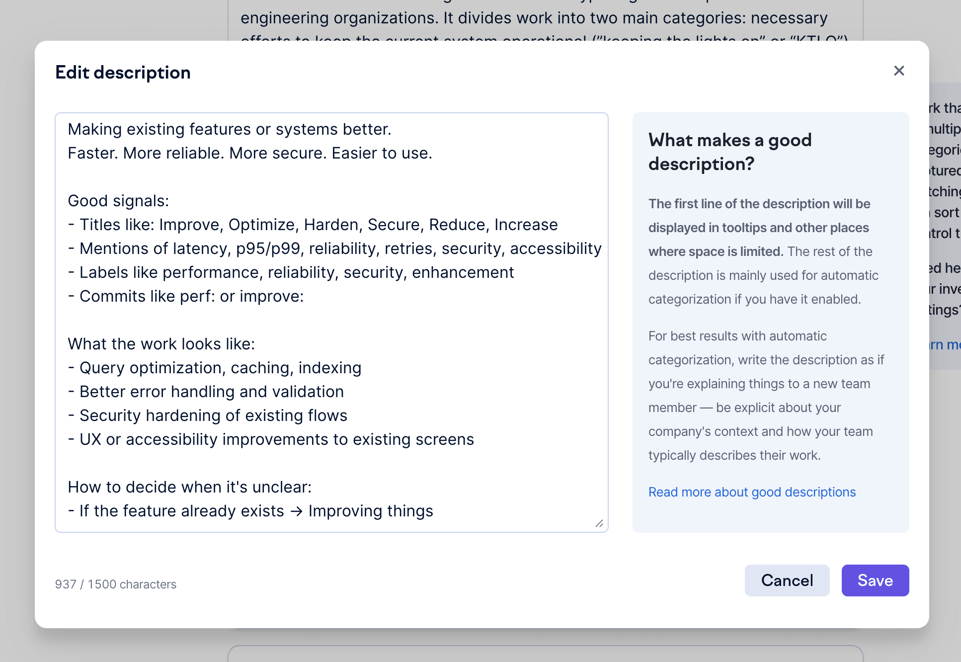 AI categorization helps you reduce uncategorized work to 0% and even open entirely new breakdowns without rolling out new processes. For example, you could create a breakdown for “customer-facing vs. internal work” or “maintenance vs. growth” and let AI handle the categorization based on your descriptions.